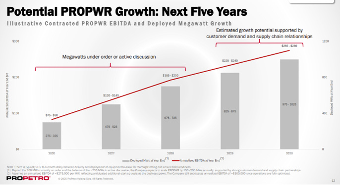 ProPwr originally targeted the oil and gas market. In early 2025, it became clear that the data center market would be a big opportunity for them. In May, ProPwr signed their first deal for 80MW in the Permian and in late October they signed their first Hyperscale data center deal for 60MW, which shocked the market. Whilst Permian power will continue to grow, the emerging data center opportunity is significant if they can execute.